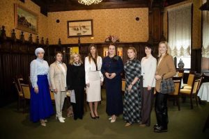 یا مثلا این تصویر که دختر عمومی پوتین در حال دیدار با همسران مقامات عالی رتبه روسیه از جمله سفرا است.
